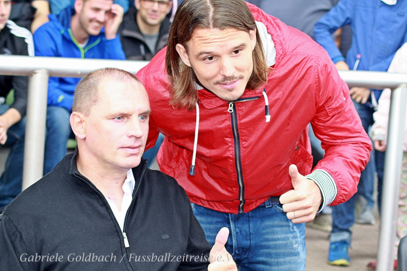 Andy Möller hat sich sehr stark bei der Organisation des Events engagiert. Er ist Dietmar Roth noch sehr verbunden. Schön, dass Freundschaften nicht nur auf dem Platz etwas wert sind, sondern auch Jahrzehnte nach dem aktiven Leistungssport noch Bestand haben. Hoffentlich tragen die zusammen gekommenen Mittel dazu bei, dass es für Dietmar Roth aufwärts geht. Ein sympathischer Zeitgenosse wie er hat es wirklich verdient. Gute Besserung, Dietmar! Auch die Fussballzeitreise geht natürlich weiter. Erst einmal haben wir mit unserem Besuch und den gezahlten Eintrittsgeldern einen wertvollen Beitrag geleistet. Außerdem konnten Kontakte geknüpft und vertieft werden.