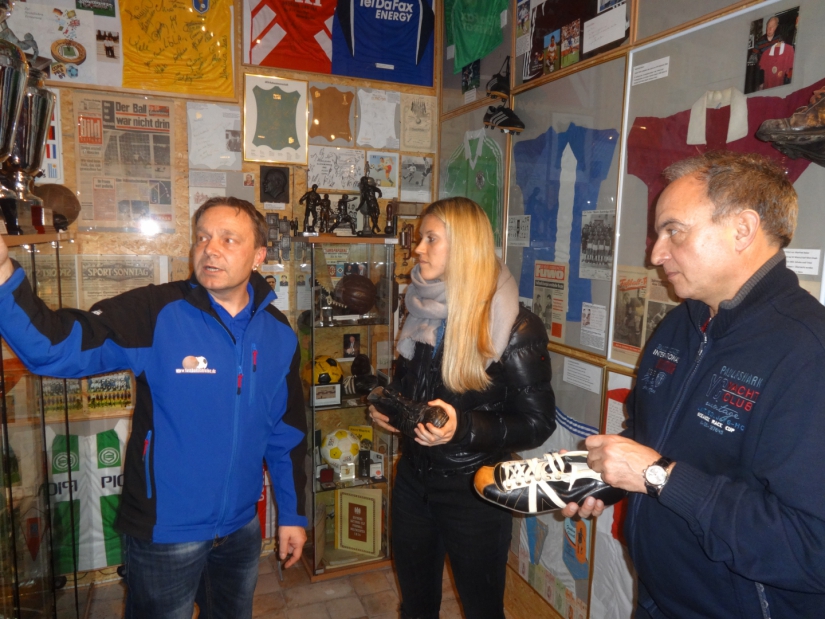 Am 22.03.2016 besuchte uns der Europameister von 1980 sowie Vizeweltmeister 1982 Hansi Müller. Der gebürtige Stuttgarter absolvierte im Laufe seiner Karriere 42 Länderspiele und spielte beim VfB Stuttgart, Inter Mailand, Calcio Como und dem FC Swarowski Tirol. Hansi Müller war 1980 der beste Nachwuchsspieler Europas. Neben ihm war auch das Freestyle Girl Nina Windmüller aus Köln zu Gast. Nina spielte aktiv für den 1. FC Köln und für den FCR 2001 Duisburg bis vor kurzem in der Bundesliga. Am späten Nachmittag reiste Hansi Müller in Tabarz an und besuchte unsere Ausstellung in der Lindenstraße.