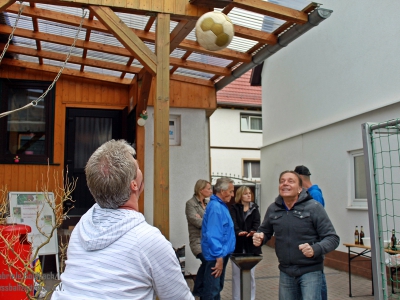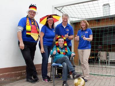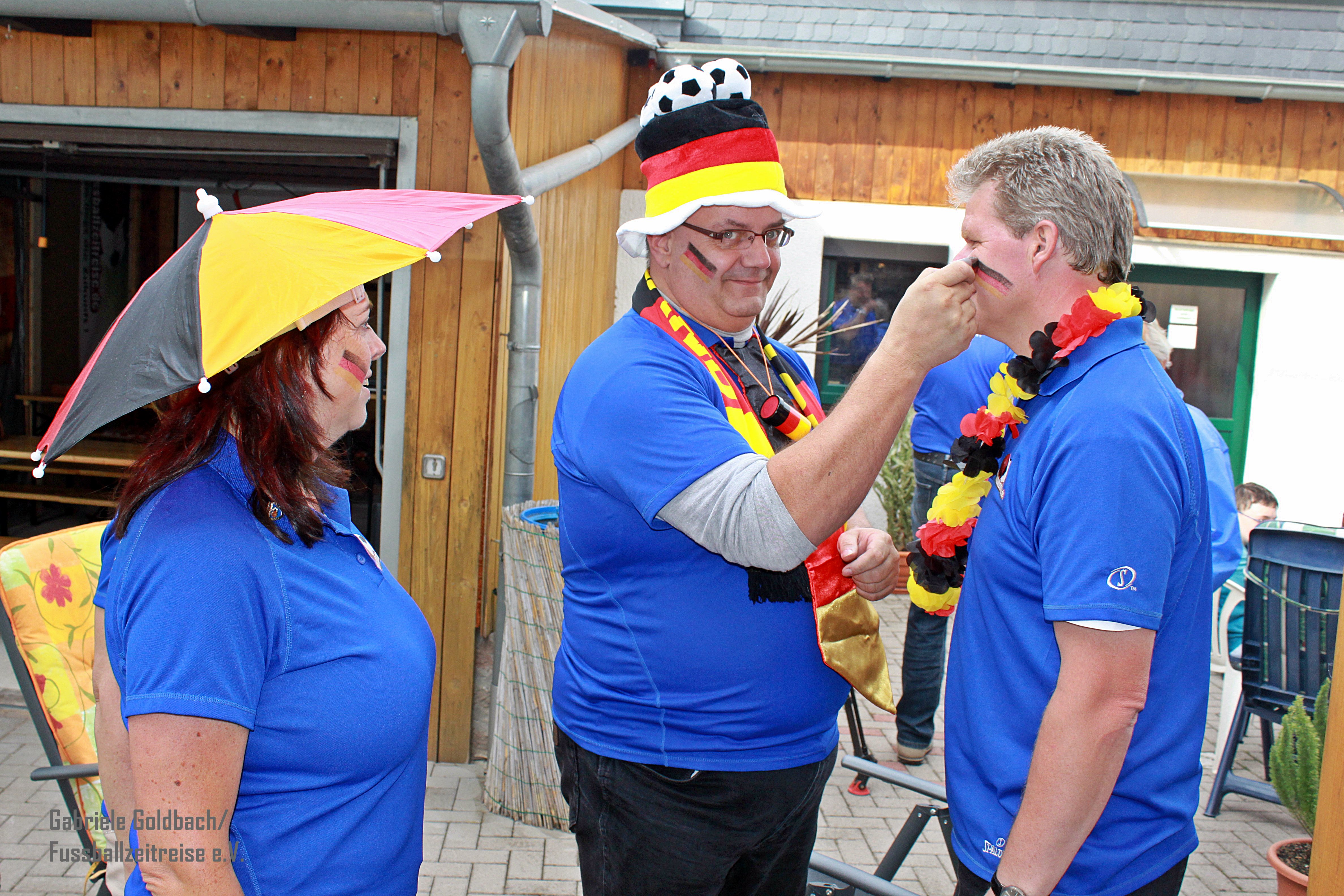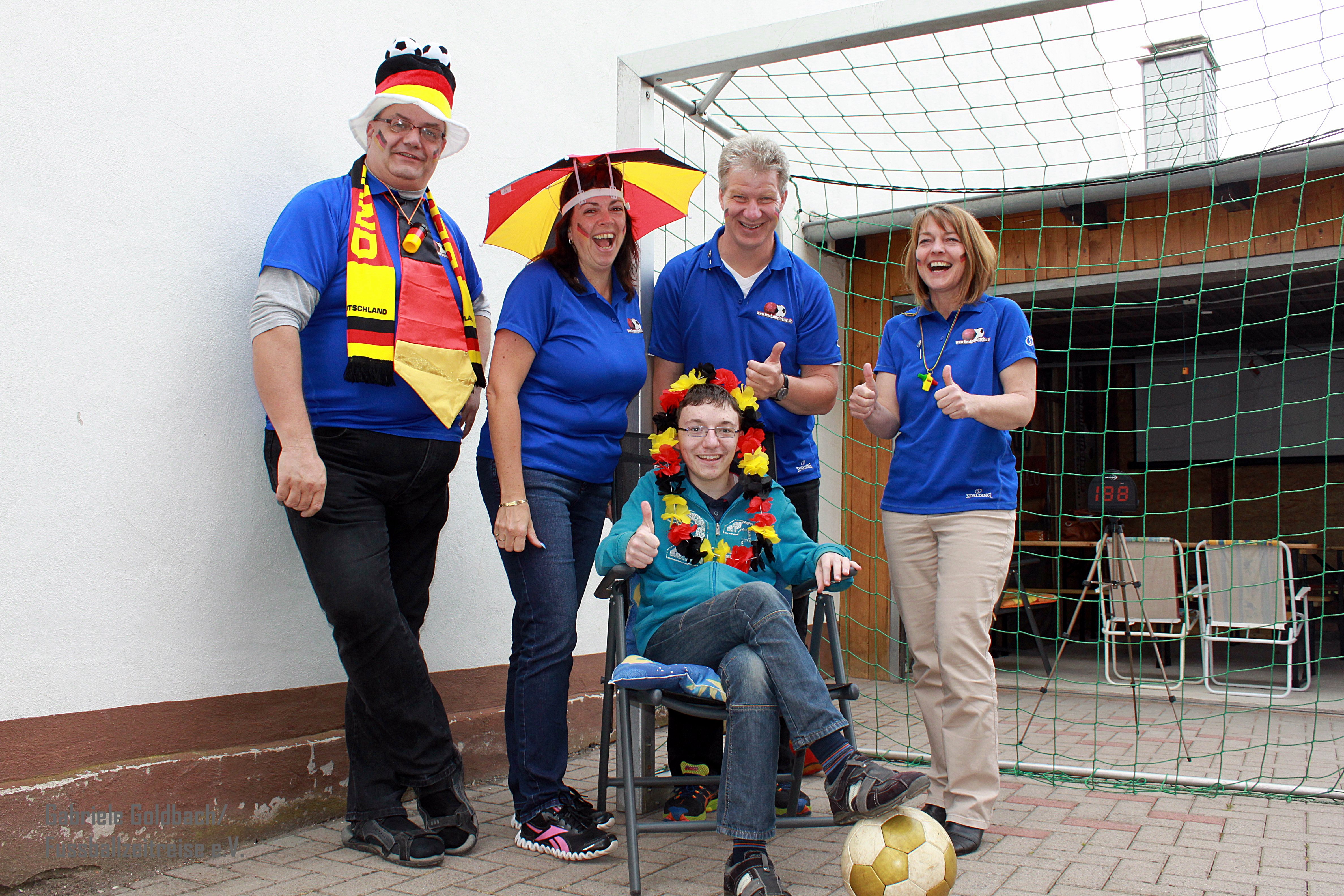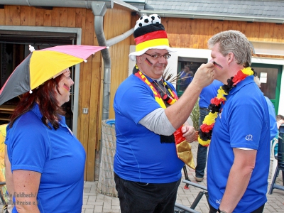 Alle Anwesenden hatten gute Laune im Gepäck. Die Einstimmung auf einen gemütlichen Fußballabend brachte noch die nötige WM Dekoration !