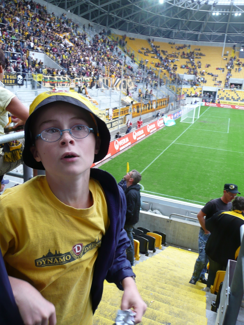 Da mein Vater seit 1978 Dynamo Dresden-Fan ist, war es logisch, dass ich mich ebenfalls für Fußball interessieren würde. Trotz des Besuches eines Heimspiels im neuerbauten Dresdner Stadion wurde aus mir kein Fan der Schwarz-Gelben.