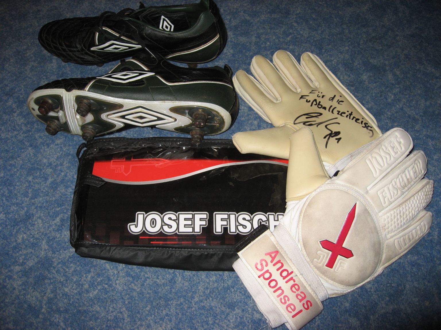 Andreas Sponsel, Torhüter des FC Rot-Weiß Erfurt versprach bei unserem Treffen am 18.04.2012, nach einem Fußballspiel in Siebleben, unsere Ausstellung zu unterstützen. Ich sollte mich nur noch ein wenig gedulden, bis die Saison zu Ende ist. Er würde mir dann seine Torwartsachen zuschicken. Ein Mann, ein Wort !