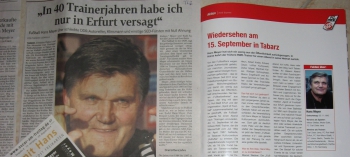 Nach Absprache mit der Touristinformation Tabarz, wegen der großen Nachfrage an Karten für unsere Veranstaltung am 15.09.2014 in der KUKUNA/Tabarz mit Trainerlegende Hans Meyer, werden noch ein...