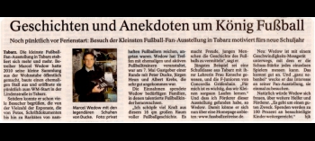 Die Ausstellung "Fussballzeitreise" in Tabarz, war am Mittwoch den 05.10.2011 in der Sendung "Außenseiter-Spitzenreiter", um 20.45 Uhr im MDR zu sehen.