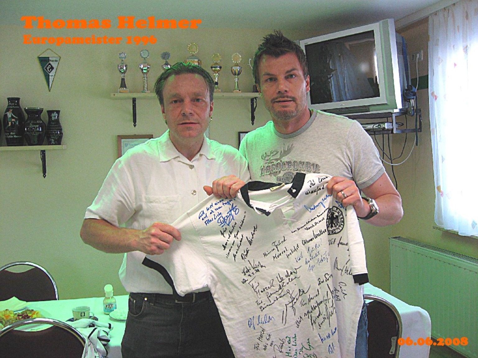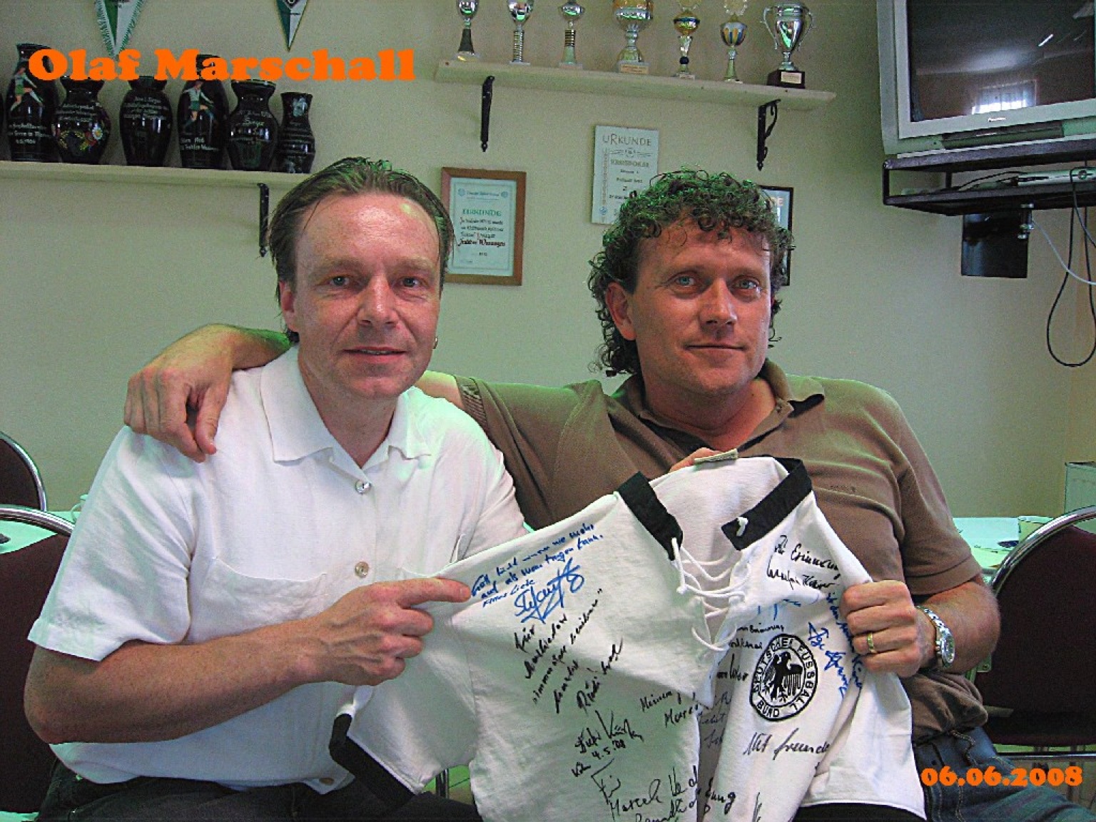 Kategorie: BegegnungenAm 06.06.2008 traf ich Uwe Seeler wieder und viele andere prominente Fußballer. Werner Treimetten im Gespräch mit Uwe Seeler. Olaf Marschall "Fußballgott". Thomas Helmer ist heute beim Sportsender DSF tätig. Matthias Hergeth
