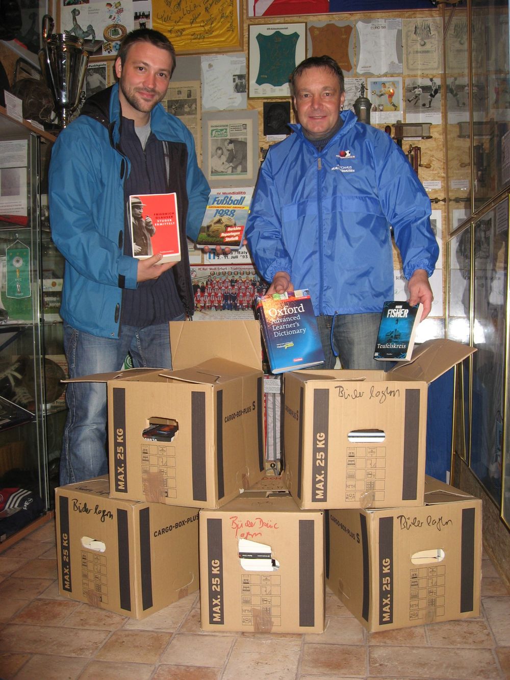 Dominic Konrad ist ein ehemaliger Tabarzer und ein Freund der Fussballzeitreise. Er beauftragte uns dem Kurdirektor David Ortmann eine Bücherspende zu überreichen. Es handelte sich dabei um 173 hochwertige Bücher vom Krimi bis zum Sachbuch. Sie werden in der Bibliothek und in der Lesehalle ein neues zu Hause finden und hoffentlich auch viele Leser erfreuen. Vielen Dank an Dominic Konrad der heute in Hechingen (Baden Würtemberg) lebt ! Vielen Dank an den Fussballzeitreisenden Jens Fröhlich, der den Kontakt zu Dominic herstellte !